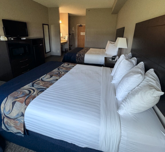 - Flat screen TVs: 40″ in suites and 32″ in standard rooms
